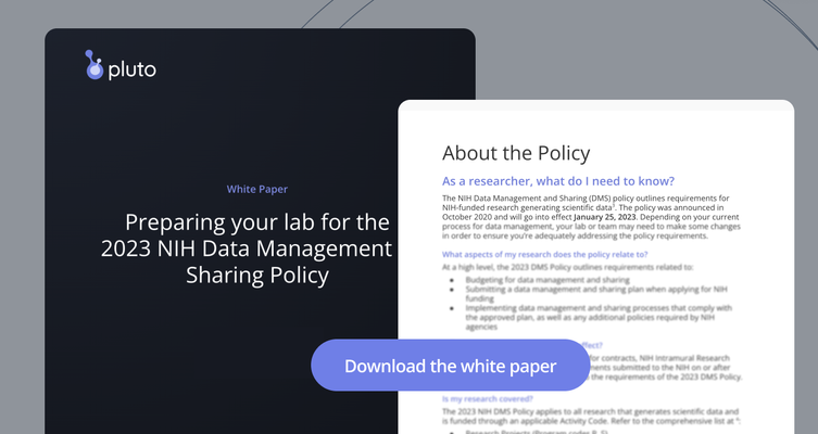 Preparing your lab for the 2023 NIH Data Management & Sharing Policy? Pluto is here to help.